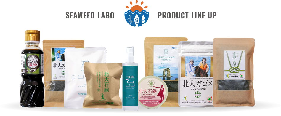 私たち北海道マリンイノベーション株式会社は2017年、北大発ベンチャー企業として認定され、地域に埋もれている海藻類の価値発見、数々の商品開発を行なっています。「海藻科学研究所(SEAWEEDLABO)」はその中でも実証研究に特化したプロジェクトであり、より確実なエビデンスの構築、実用的な製品の開発に力を注いでいます。